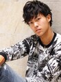 大人の色気を漂わせたウェットショート。長めバングで目元を印象つけて!無造作な動きのあるニュアンスパーマで、作り込み過ぎないラフでナチュラルな雰囲気に。七三&ツーブロックで毛量調節をして、ワイルド&ハンサムな好感度大のスマートマッシュの完成!