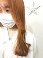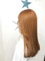 ケアブリーチを1度して赤味のないオレンジベージュになっています!