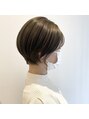 艶感のあるオリーブベージュ×コンパクトにまとまるショートはお手入れ簡単でお洒落な印象になります♪頭の形が綺麗に見える美シルエットです。