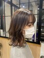 絶妙に可愛い長さのミディアムロング。カラーは艶髪のラベンダーベージュで大人可愛く♪ゆるく巻いても、外ハネでも気分に合わせてアレンジできます。伸ばし中でも楽しめます。