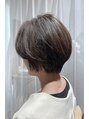 自然な丸みのハンサムショート。後頭部の骨格を補正し自然な丸みのあるスタイルに。襟足の上を向いたハエぐせなども自然に収まります。カラーは暗くなりすぎないアッシュブラウンに。