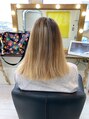 全体を黒くしてエクステでハイライトを入れたいオーダーだったけど、説得してやめてもらいました。全部を黒くするとビフォアのハイトーンに戻れないから、シャドウルーツする事で陰影ができて、かき上げても束ねても可愛いです。こちらは空洞の強いスタイル★