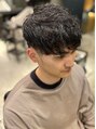 1ミリからのフェードカットで2ブロックを入れてトップはマッシュスタイルにしてくせ毛風のパーマを当てました。