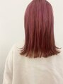 ダブルカラーでピンクカラーにしたストレートロブ。前髪をオン眉でかわいく束感をだしました