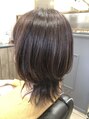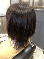 すこし長めのウルフカット。カラーは暗めのパープルにしました。染まりやすい髪の方は 発色もよくかわいいです!カットは上を軽くすることで乾かしも楽ちんです☆