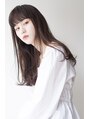 ニュアンスをつけるくらいのややウェーブなロングスタイル。重みのあるIラインシルエットに広めにとったラウンドバングがナチュラルよりも少しだけモードに寄せたスタイルです。