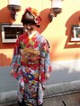 トリプルカラーでつくる流行りのフェイスフレーミングカラー。サイドとバックはコバルトブルーで個性的に。