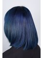 1ブリーチで青系の色は難しいですが、このくらいの濃い青なら可能です。暗い場所では落ち着いた髪色に見えるので、オススメです。