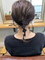 上下でナチュラルに色分けしたデザインカラーのまとめ髪アレンジ