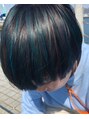 ターコイズブルーのメッシュが個性的で可愛い♪マッシュヘアのデザインカラーです。