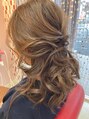 顔まわりをラフにおろし自然にやわらしくハーフアップしています。