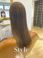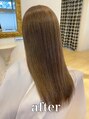 【髪質改善】しっとりタイプのケアーを行いました。髪の毛は縮毛矯正で癖、うねりを綺麗にしてます。薬剤は、SH:H:Nを5:1:1で配合しました。バックの癖が強いところに関しては、塗り終わってから更にSHのお薬を被せています。カラーも流行のオリーブ系です。