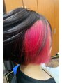 オーソドックスなボブにインナーカラーのレットがビビットにデザインにアクセントをつけてくれるスタイルです♪インナーのみブリーチを使いWカラーを施しています♪