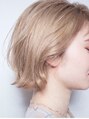 ギリギリ結べる長さのコンパクトなミニボブ。14トーンまで明るくし、ベージュカラーに補色としてパープルを入れました。パープルを少し入れる事によってやわらかさがプラスされます!