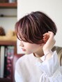 サイドのウェイトを鼻の高さに合わせたノーズラインのハンサムショート。襟足はスッキリタイトに収まるようにカットしたメリハリのある、幼い印象にならないショートスタイル。発色と色持ちがよいカッパー系をベースに柔らかみのあるベージュをプラス。