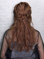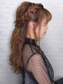 シースルーの前髪と崩した編み込みでトレンドスタイルに♪結婚式のヘアアレンジにオススメです