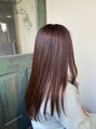 自然なストレートスタイルです。ラウンド状にカット。毛先は軽くしているので、ストレートロングでも重く見えず柔らかいスタイルです。カラーも明るめにするのが軽く見えるポイントです。