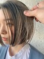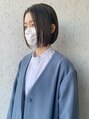 ぱつっとラインのミニボブ。重たくなく、広がらない質感で扱いやすさを大切にしています。カラーはブリーチ1回のまろやかベージュ。ほんのりオリーブを混ぜることで柔らかいカラーに仕上がります。