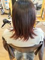 ハイライトが毛先に残っていて、それを活かしたグラデーションカラー。一回のブリーチ、ハイライトでかなうピンク系カラー。