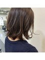肩に当たるぐらい(前から見ると鎖骨)の長さの切りっぱなしボブ。表面に軽くレイヤーが入っているので見た目も軽くなりスタイリングもしやすいスタイル!カラーは赤みを消しすぎないアッシュグレージュ