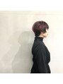 くびれショート×ツーセクションカラー表面はチェリーレッド、下の方はバイオレットのヘアカラー