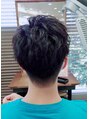 パーマ感を残しながらツーブロックと刈上げで爽やかに前髪は男らしくアップバングにしてあります!