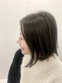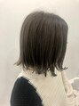 ちょっと前下がりのパツッとボブ。透明感あるグレージュカラーで柔らかい質感に。外ハネしたり内に巻いてみたり、色んなアレンジがきくパツッとボブ。前髪作ってみてもまた違う感じで良いと思います。