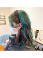 春なので、ブリーチを使ったカラーリングをする方が増えています!こちらはインナーカラーなのですが表面にブリーチ部分のエメラルドグリーン、内側はダークグリーンで構成しました!