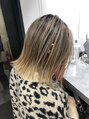 エアータッチとバレイヤージュという技法にハイライトとバックコーミングという技法を組み合わせてグラデーションをつくるので、スジ感がありながらも自然な陰影が作れます。切りっぱなしスタイルはデザインカラーとも相性がとても良いですよ♪