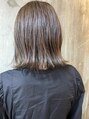 何ヵ月か前に入れたハイライトを生かして、ちょっと暗めのピスタチオグレージュで透明感たっぷりカラー!重めのストレートボブでも軽く見せることのできるカラーです♪肩に当たってちょうどハネやすい長さなので、スタイリングも楽にできます^^