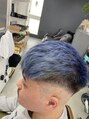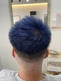 クロップスタイルでの0mmからのスキンフェードダブルカラーでブルーにグラデーションに染めているのでスタイリングが映えます