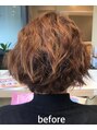 縮毛矯正の施術履歴のある毛先を馴染ませ髪のくせを活かしたカットを行いました。カラーは落ち着きのある色で大人女性にぴったりの色味に仕上げています☆