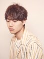 サイドを刈り上げ、耳周りをスッキリと。アイラインすれすれの前髪でおしゃれな雰囲気に。丸いシルエットにならないように毛先をハネさせて動きをつけるパーマをかけています。顔周りに動きがあるので小顔効果もあります。
