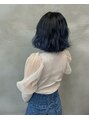 ダブルカラー ハイライト バレイヤージュを経てのブルーのコントラスト