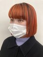 ブリーチ1回からできます!ビビットなオレンジの中に黒い毛を残してローライトのように仕上げました!