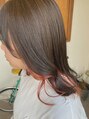 あまり長さを変えずに、毛量調整しました☆インナーをワンブリーチでリフトアップ♪その後に【ピラミンゴカラー】で作るペールピンクが可愛い☆チラリと見えるインナーがポイントの私特製の流行スタイルです♪