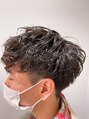 強めのスパイラルパーマをかけ少し軽くしているのでワックスをつけると動きがでてスタイリングを簡単です!マスクは気にしないでください笑
