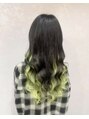フェイスフレーミングから繋がるようにグラデーション風にも仕上げました★黄緑カラーでモードな印象!