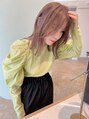 ブリーチなしでできるツヤツヤなピンクブラウンカラー。肩上の切りっぱなしボブとシースルーバングが可愛いです。#インナーカラー#ハイライト#ブリーチ#ダブルカラー#イヤリングカラー#トリートメント#ケアブリーチ#縮毛矯正#髪質改善#ボブ#パーマ#カット
