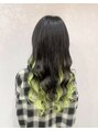 フェイスフレーミングから繋がるようにグラデーション風にも仕上げました★黄緑カラーでモードな印象!