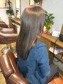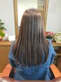 新色スカイブルーで染めました。光に当たると透け感アッシュが出てきれいな色です!カットはうしろは段を付けずに、サイドだけ段をつけて軽く見えるようにしました。