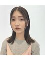 シンプルなストレートロブ。カラーはミントベージュで重めストレートでも柔らかい印象に♪前髪が長くても短くても似合うスタイルです(*^^*)