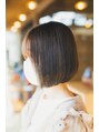 うつむいた時に綺麗な束感が出るように計算した前下がりのアゴ下ボブです。今季人気のベージュカラーで艶感UP