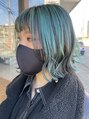 トップ周辺のみをブリーチするサーフェスライツというデザインです。表面のブリーチ部分は鮮やかなターコイズに、内側はダークグレーにさせて頂きました!ブリーチ部分は少ないですが表面にデザインが出てくるためインパクト大です!