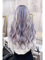 ブリーチ履歴2回ある髪をさらにブリーチをしてシルバーグレージュにカラーしてからエクステ70枚ムラサキとブルーにカラーしたエクステを混ぜながら付けてロングスタイルにしました。ムラサキとブルーのエクステは取り扱っていないのでエクステを染めてます