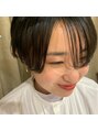 後ろのウエイトの位置を変え、襟足もスッキリなstyle。前髪は透け感を出しつつ少し重めに。前髪からサイド耳にかけた時の流れ方を自然に。