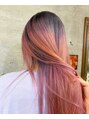 根元は紫色で毛先は薄ピンクへのグラデーションです!