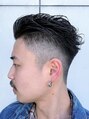2mm~のフェードスタイル。無造作に、後ろに流れるようにパーマをかけているので、ジェルでかきあげるようにセットするだけでキマります。