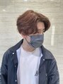 メンズパーマ×オレンジベージュ/センターパート/西原晃