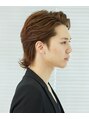 襟足を長めに残したミディアムスタイルは、サイドをツーブロックにしてすっきり見せるのがポイント。前髪を上げると爽やかな印象が際立ち、パーティーなど華やかなシーンにも好相性。襟足をハネさせて遊び心を見せるとGOOD。